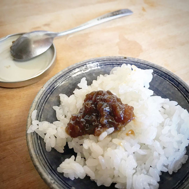 ピーマン味噌というものをいただいたので早速新米に乗せて。ピーマンと青唐辛子に味噌や砂糖などの調味料で作られているみたい。甘い味噌の後に青唐辛子がピリッときて美味しい!