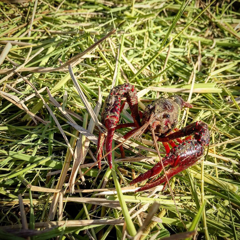 刈り終わった田んぼにザリガニ。