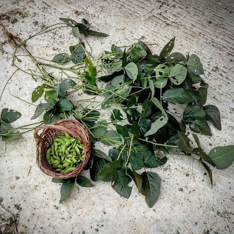 仕事上がって、今宵のつまみになる茶豆を畑で蚊に刺されまくりながら枝からはずす。
