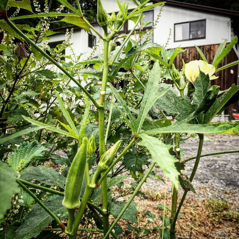 オクラの花と実。