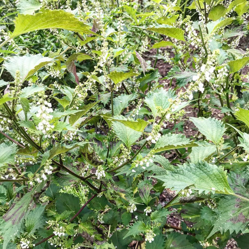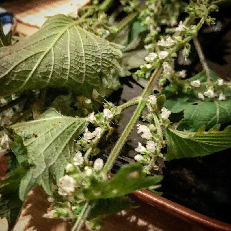 畑の紫蘇の花と若い種で。