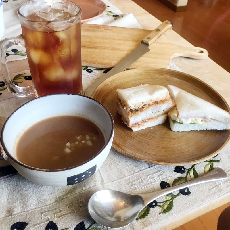 ガスパチョ&サンドイッチ&冷たい紅茶のランチ。