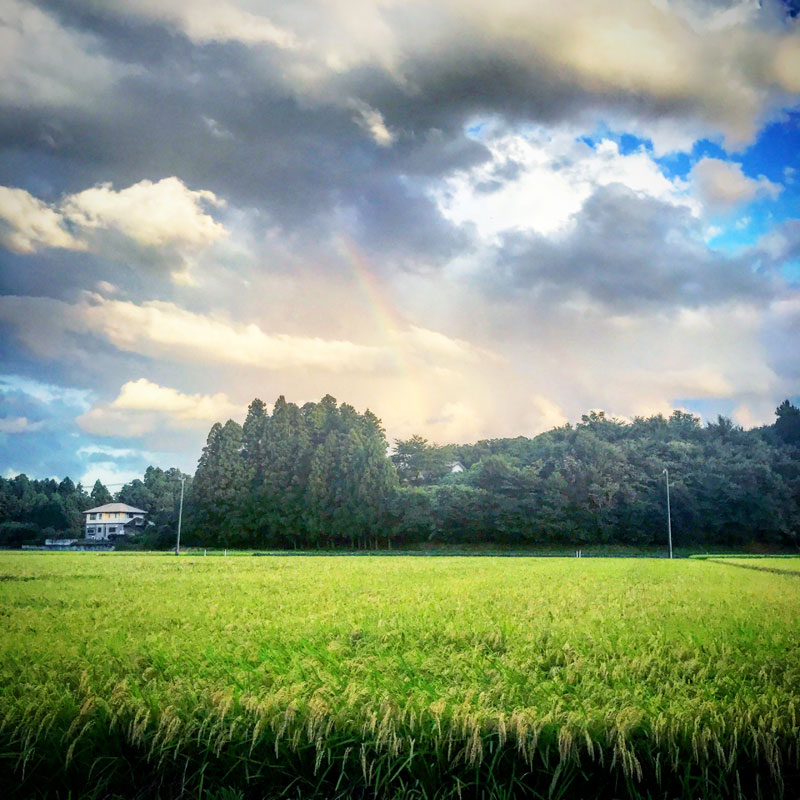 淡い虹がずっとかかってる夕暮れ。