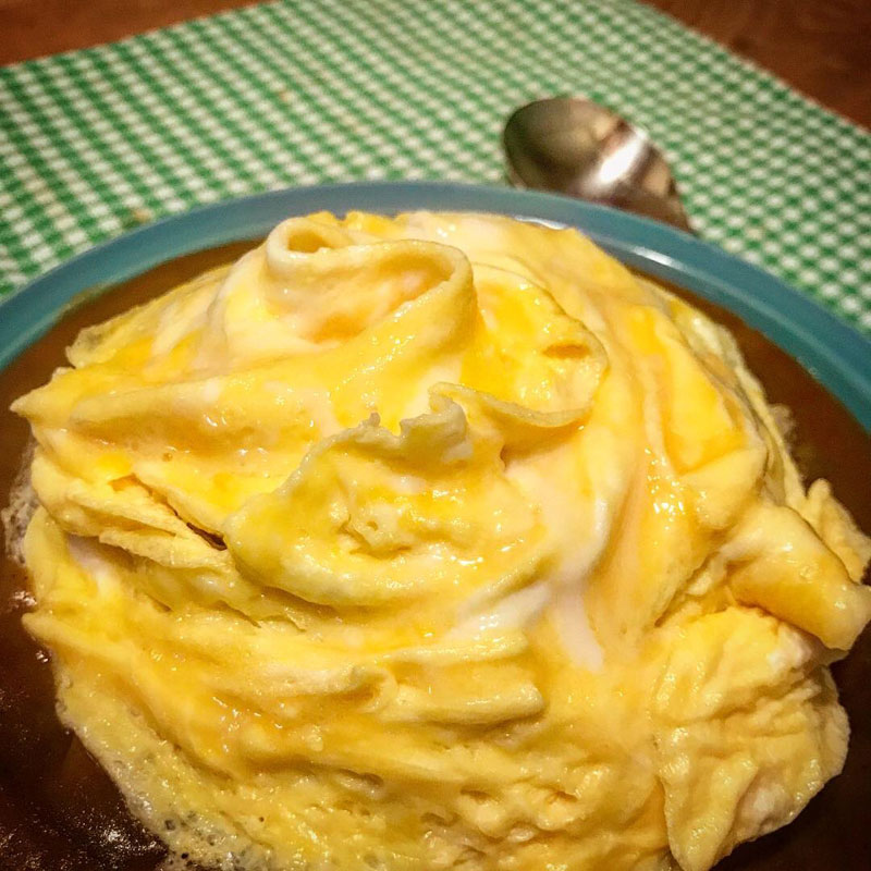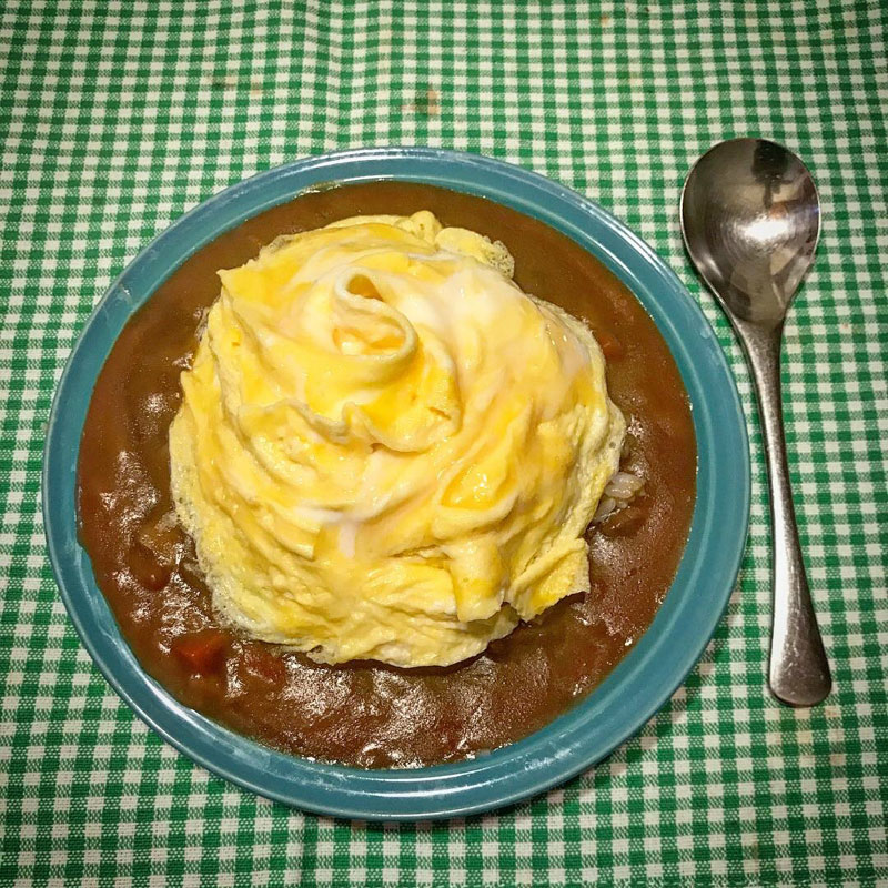 これは、夕食のカレーに乗せたドレープ(ひだ)のあるオムレツだし、