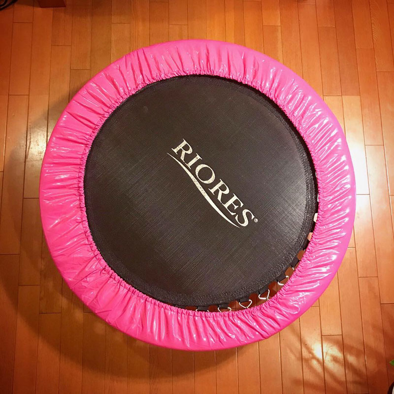 カミさんの健康法。我家の居間のトランポリン。