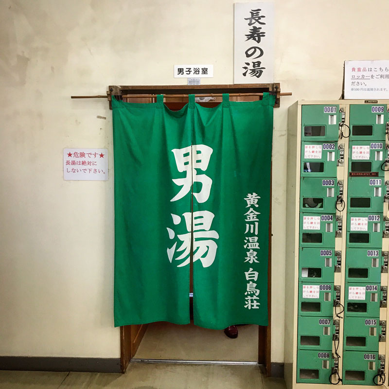 疲れの溜まってる身体を黄金川温泉の湯に浸けた。黄色く濁ったお湯は何も見えない。タオルも黄色く染まる。蔵王山系の熱い温泉は気持ちが良い。