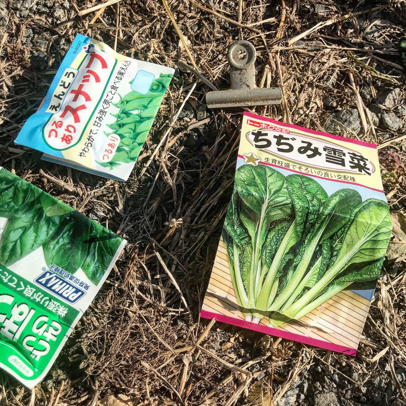 無理矢理作ったスペースに雪菜とスナップえんどう蒔いた。