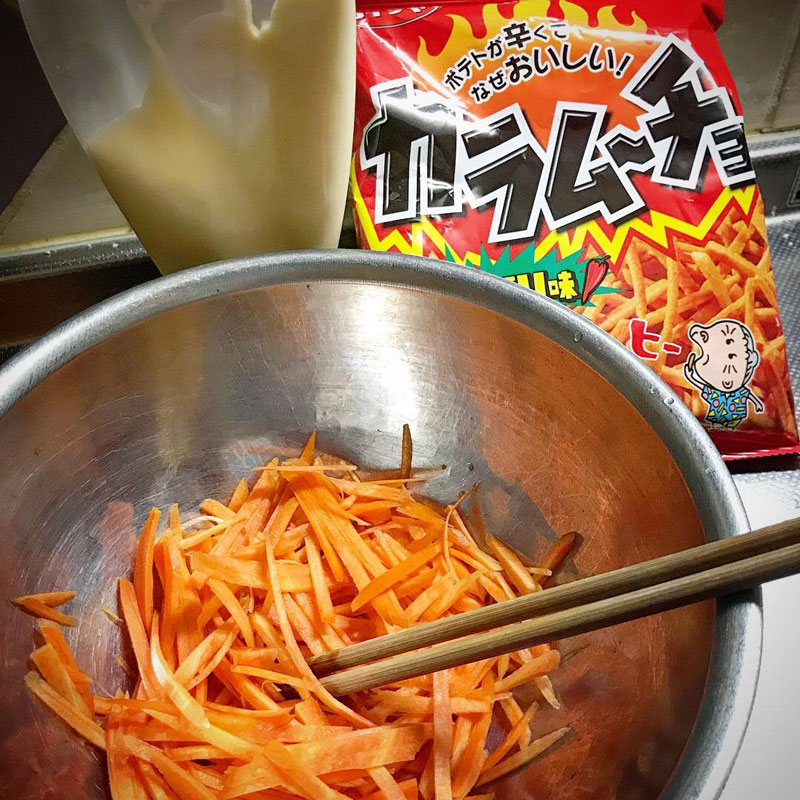 にんじん細切りにして、マヨネーズとカラムーチョとあえて食べてみて…。人参嫌いの子供が無限におかわりする悪魔の食べ物が出来るから…。にんじん農家イチオシの食べ方だから…。にんじんがあっという間に数本なくなっていくから…。