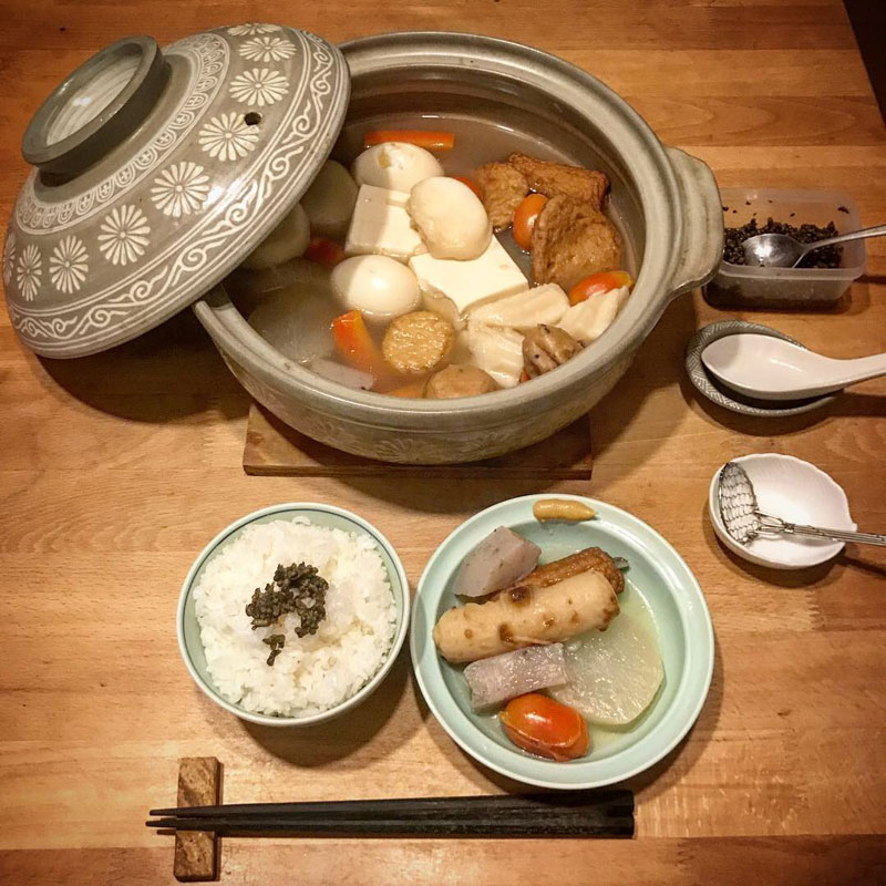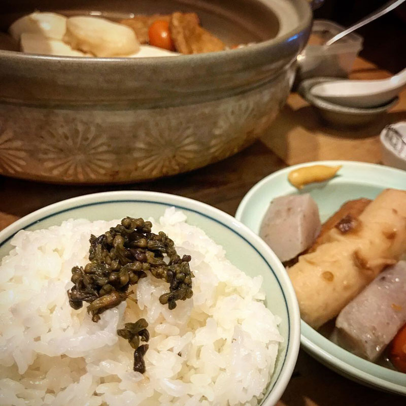 おでん2日目 スナップえんどう、 ミント。 夏の名残り、こぼれ種から芽が出たのかルッコラの葉。 畑で季節外れのルッコラが育っていたので昼飯のナポリタンと一緒に食べた。苦くて美味しい。 おでん2日目。今日も畑にミニトマトがなっていたので投入。 新米には紫蘇の実の麺つゆ漬け。 〆はご飯に絹ごし豆腐を乗せてつゆをかけ長ネギ散らして醤油ひとたらし。友だちに教えてもらってから気に入っておでんには豆腐入れて〆によくやってる。 2018年10月18日 | コメントはまだありません | カテゴリー: おいしい