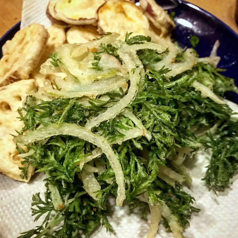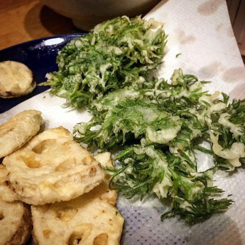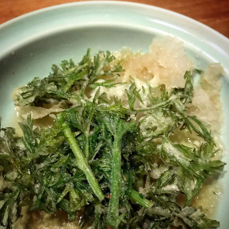京千菜。不織布で防寒すれば少しは食べられるようになるかなぁ。
