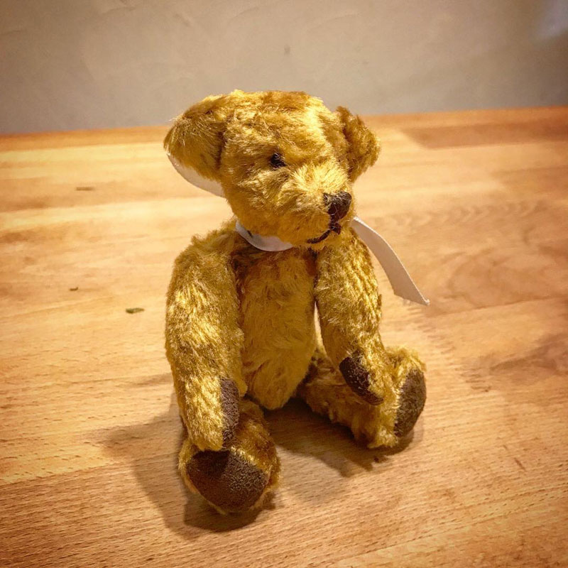 カミさんがイギリスのアンティークの小さなテディベアを買ってきた。ちょっとびっくり。カミさんはこーゆーものを買わない人。