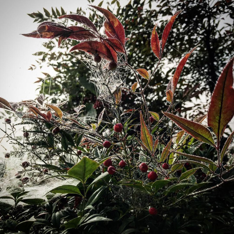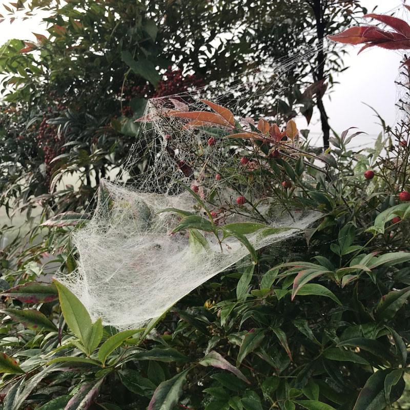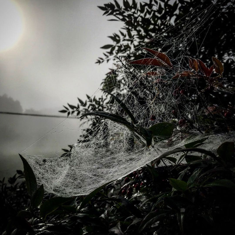 こんな日は家の周りにどれだけたくさんの蜘蛛の巣があるかわかる。