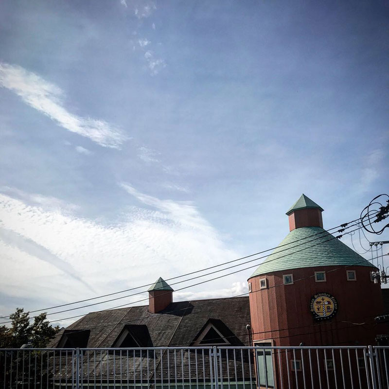 そのまま早朝の空撮りドライブ。市では地ビールが作られている。