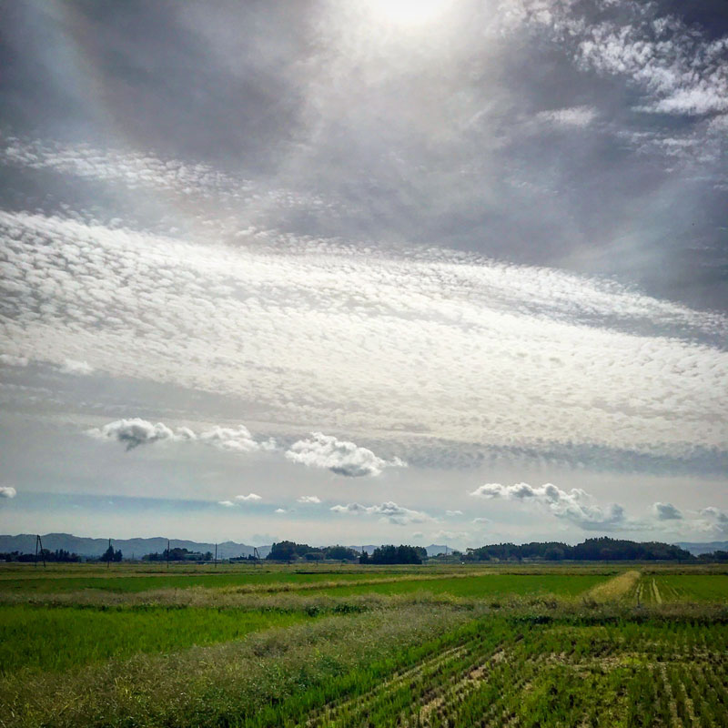 ひこばえ(刈り取った稲から伸びた側芽)の緑で辺りの田んぼがいっぱいになってきた。このまま放ったらかしだけど、水や肥料を与えると再び米が収穫できるらしい。