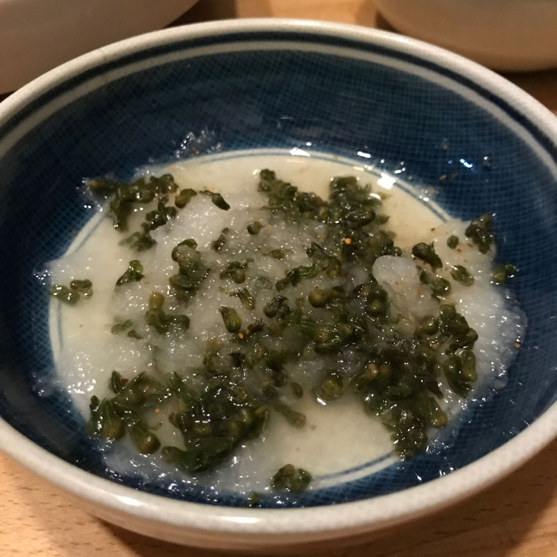 庭の畑の紫蘇の実を塩漬けにしたものを大根おろしに合わせた漬け汁も最高。