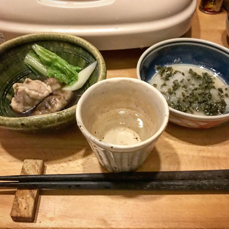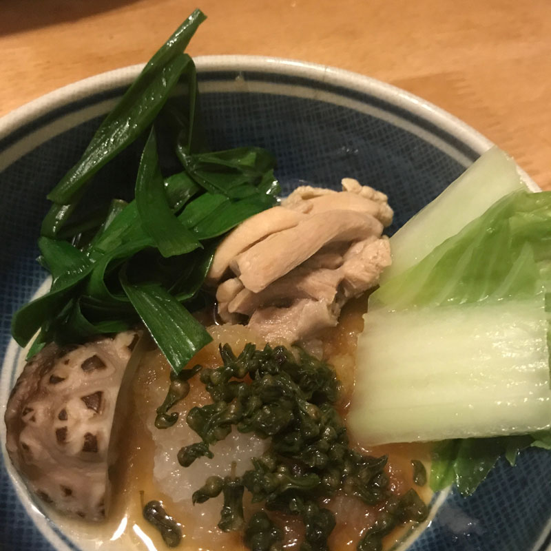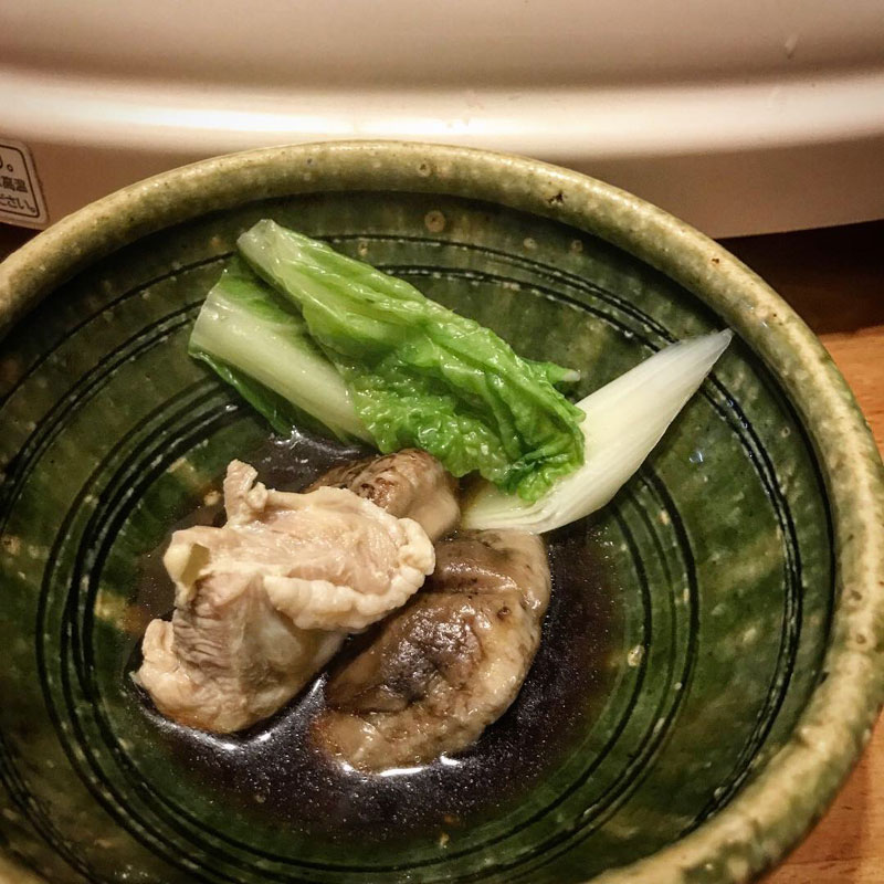 鶏鍋の出汁が出まくった汁に塩胡椒とうまじさのポン酢をほんの少し。紫蘇の実の塩漬けでいただいた。最高!ごちそうさまでした。
