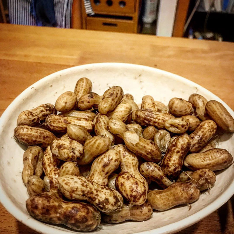 塩茹でにした生落花生の器もエミシ工房のステキな白い器。