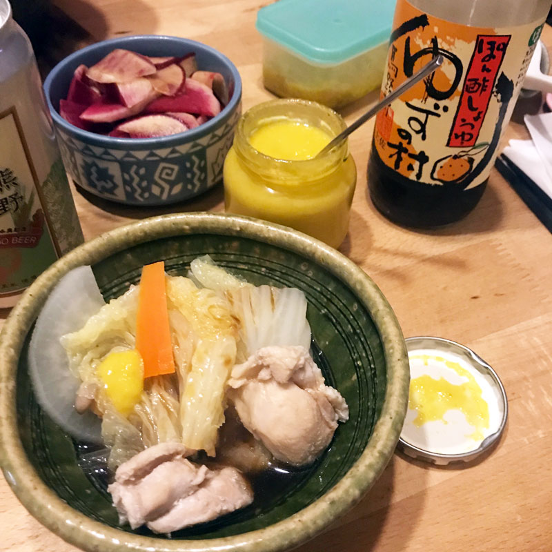 んー、今まで食べた柚子胡椒の中で一番美味しい。ひろみさんの柚子胡椒を待ってる人が何人もいるのわかる。僕もそこに入りたいもん(笑)冬は鍋、カミさんも僕も大の柚子胡椒好き。
