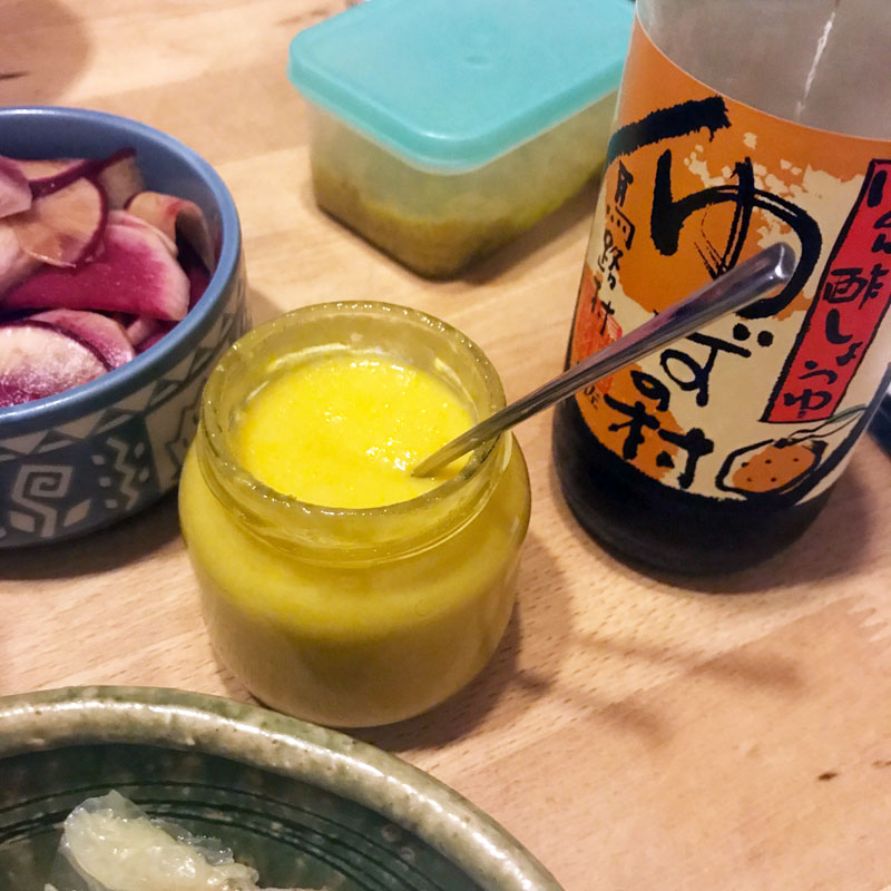 手作り出来ると知って実は今年、青唐辛子を買って柚子が出るのを待っていたら宮城は青唐辛子と柚子がなるのは一ヶ月のタイムラグがあって結局作れなかった。ひろみさんに青唐辛子を冷凍しておいて柚子がなったら作るって教えてもらった。なるほどー!
