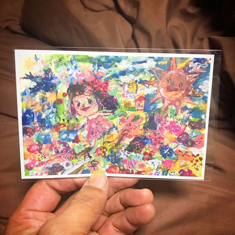 去年、せんだいメディアテークのカフェに個展のDMを置いてもらった時にひときわエネルギーを放っているDMがあったので見に行ったらとても元気をもらった展覧会。とても印象に残った。エネルギーの元は色彩だけじゃなくて女の子の表情や画面に書き込まれた文字、そしてタイトルからも。