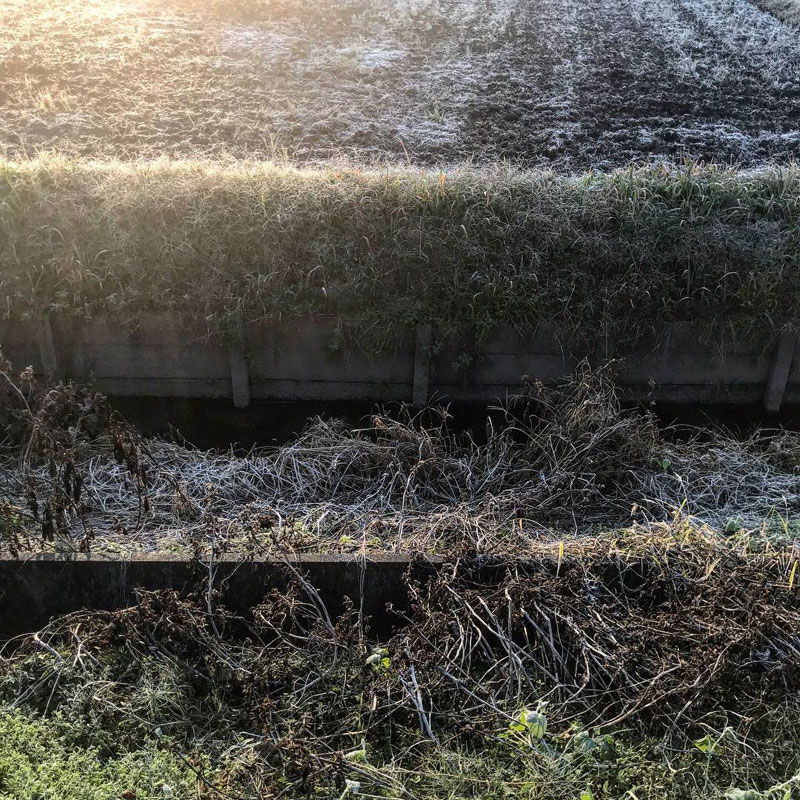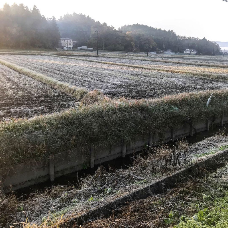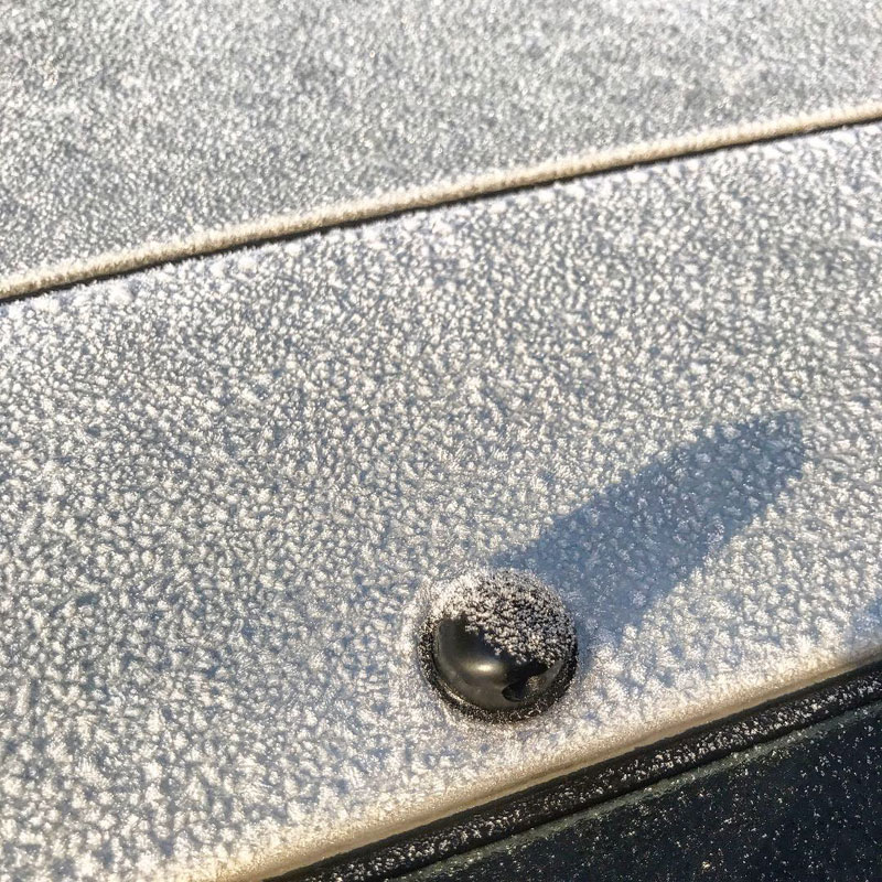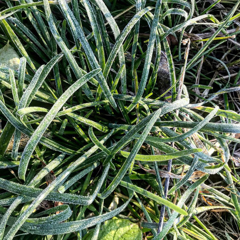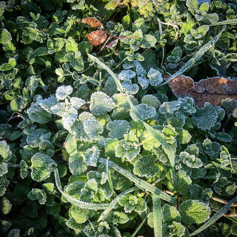 庭に出てみたら辺り一面にびっしり霜が降りていた。