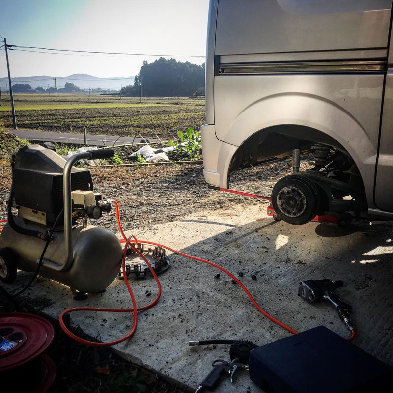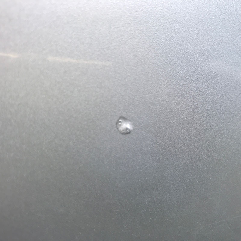 石彫号に小さな小さな錆の点がいくつか。多分、ナイロンコードで庭の草刈りをした時に小石が当たってしまった。