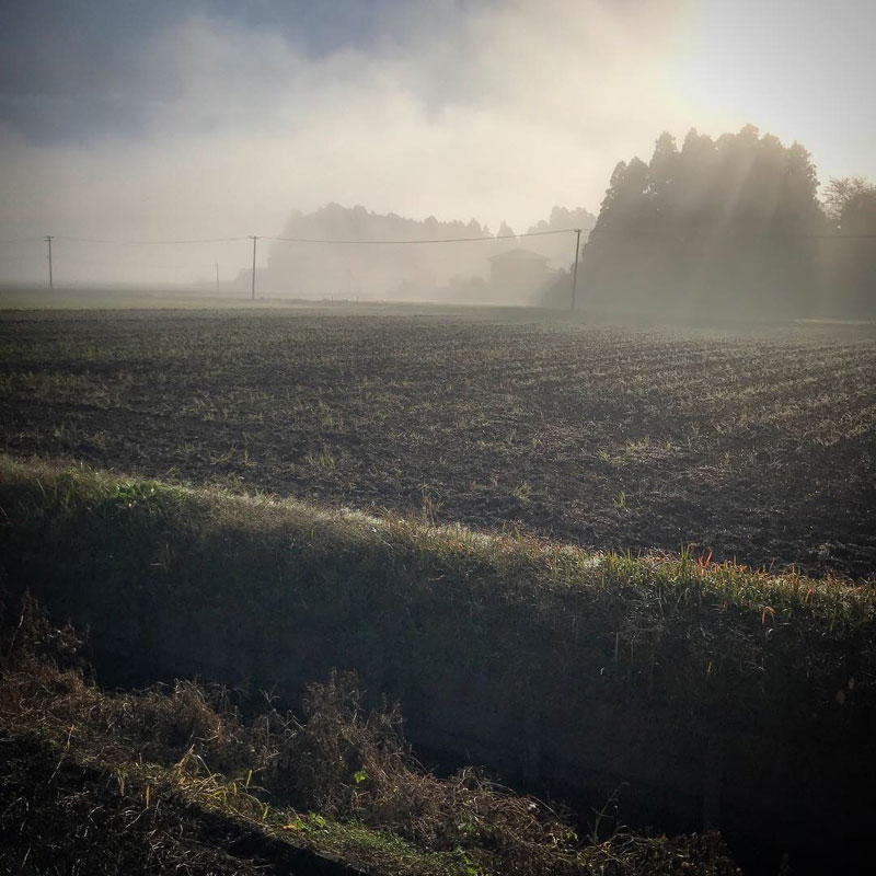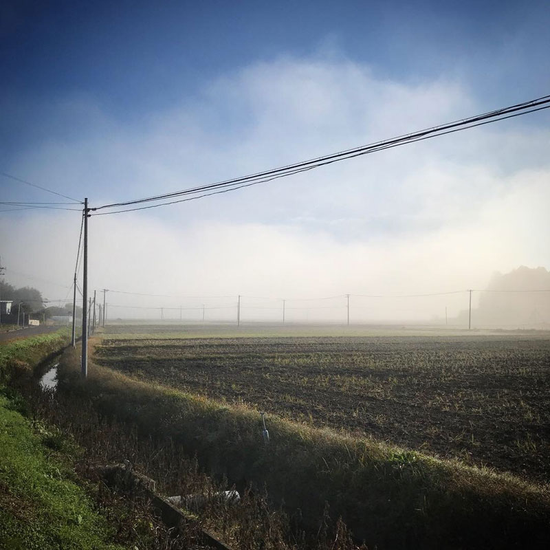 家の前は濃い霧の朝。