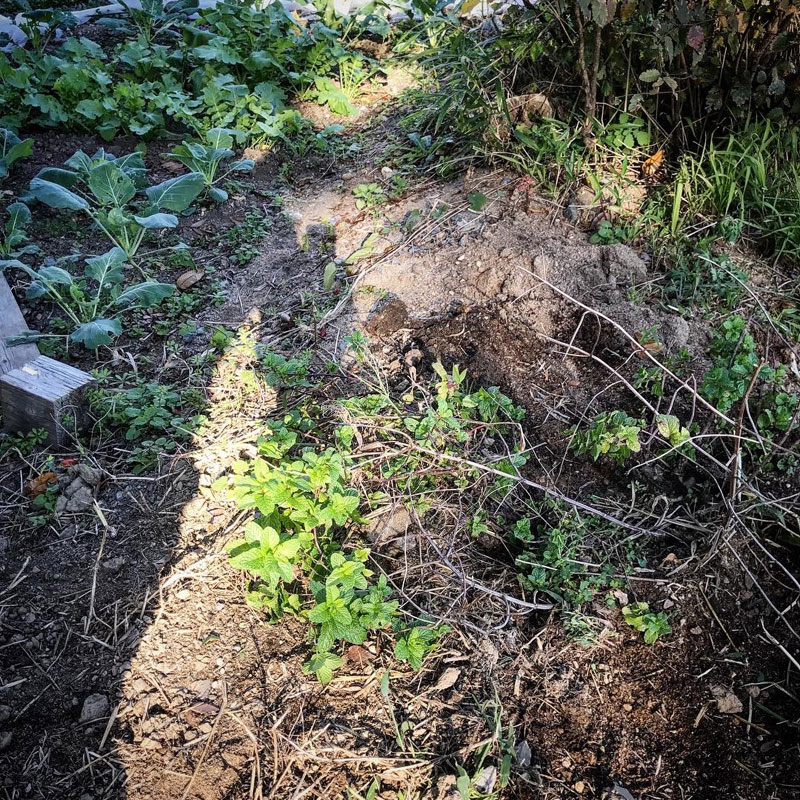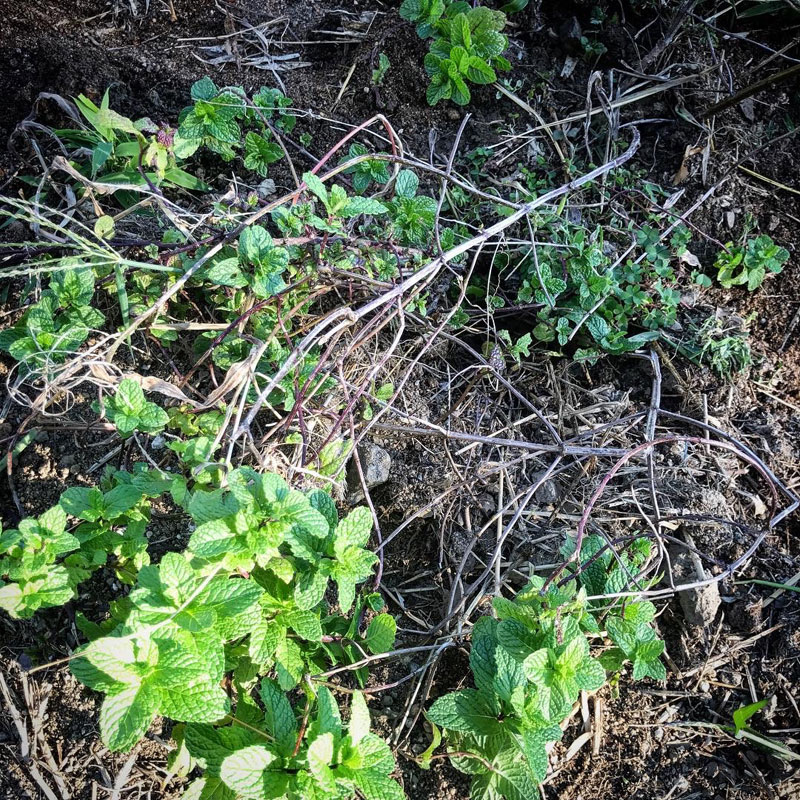 畑のミント。地を這うように枝を広げて野菜を育てる邪魔になっていた。