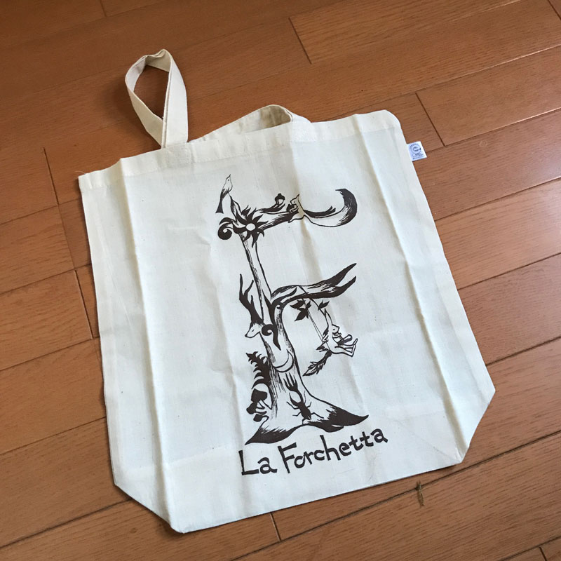 お店のロゴの入った手提げ袋の絵はしろさんが描いたもの。