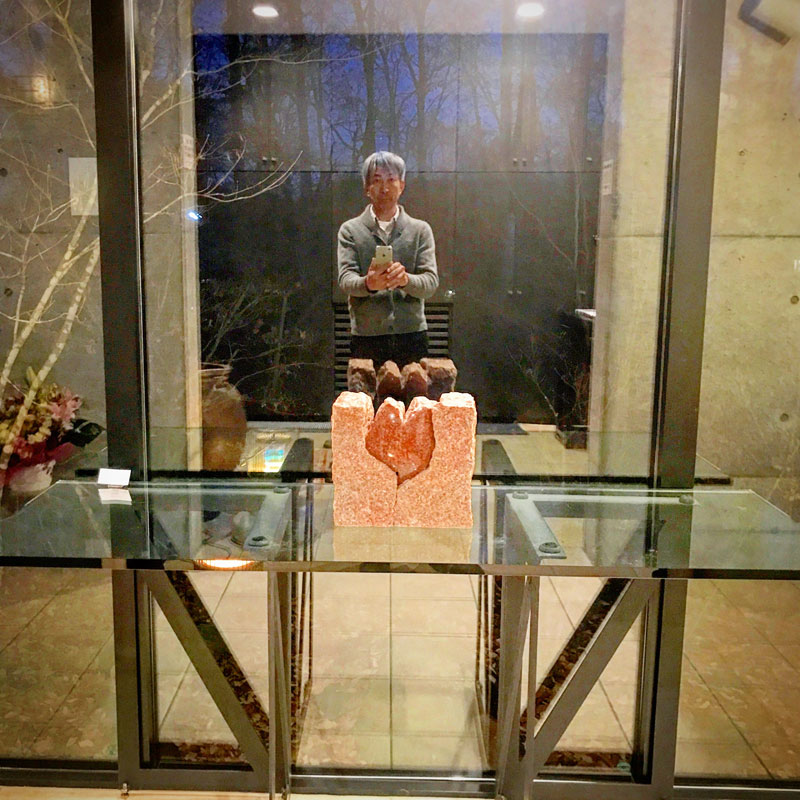 2年前の東京個展の際にスタッフとして強力にサポートしてくれた教え子のMaoさんが、まるで近所から自転車に乗ってきたような風情で個展に来てくれた、東京から!2年前のミュゼ・マエナカでの写真と同じところで一枚・笑
