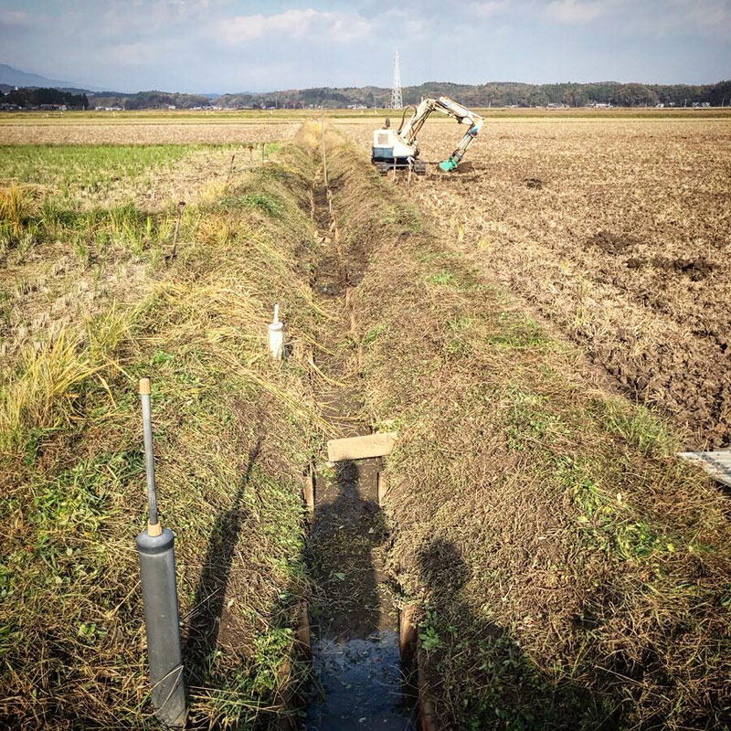 壊れた用水路をみんなで直す。