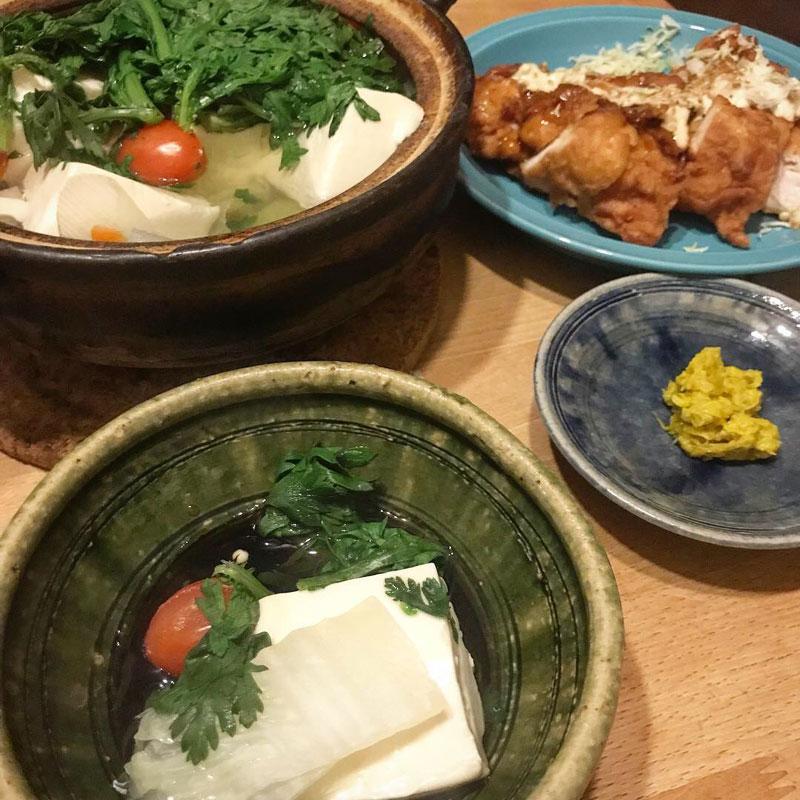 居酒屋我家、開店。湯豆腐。鶏肉の南蛮。