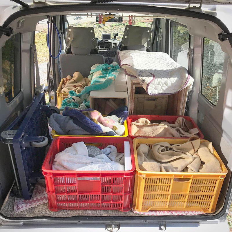軽の1BOX車にいつでも温泉に入れる様に常備してあるお風呂セットと