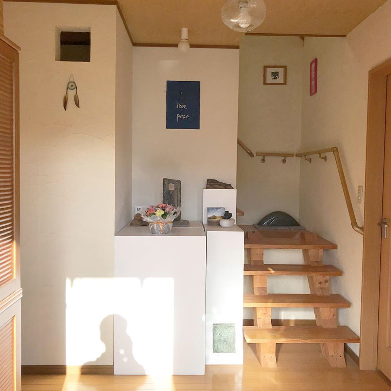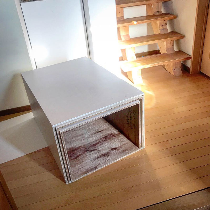 玄関に2セット置いてあった三重の入れ子になっている展示台積む。
