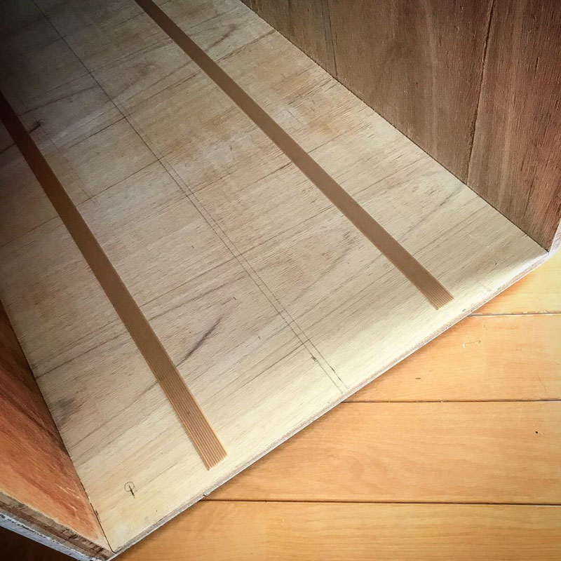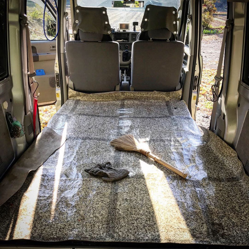 荷室をはいて水拭き。事務所などの床に貼るシートを敷いてある。