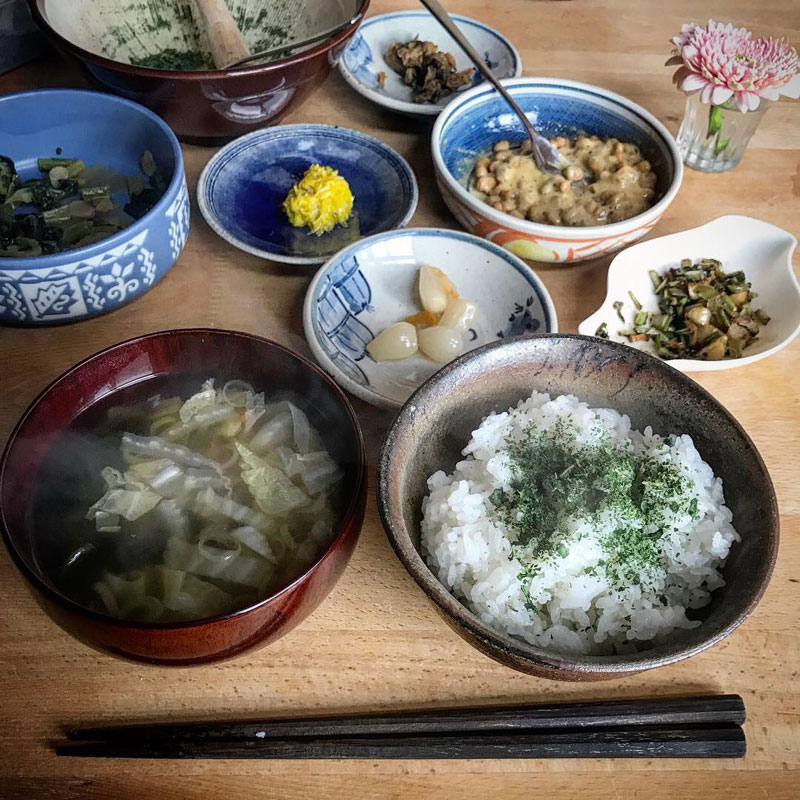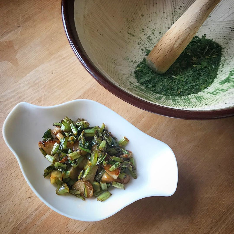 昼飯に畑から大根間引いてきて大根の茎と実は胡麻油炒め。葉はしごいてレンジで水気を飛ばして塩と一緒にあたり鉢でする。