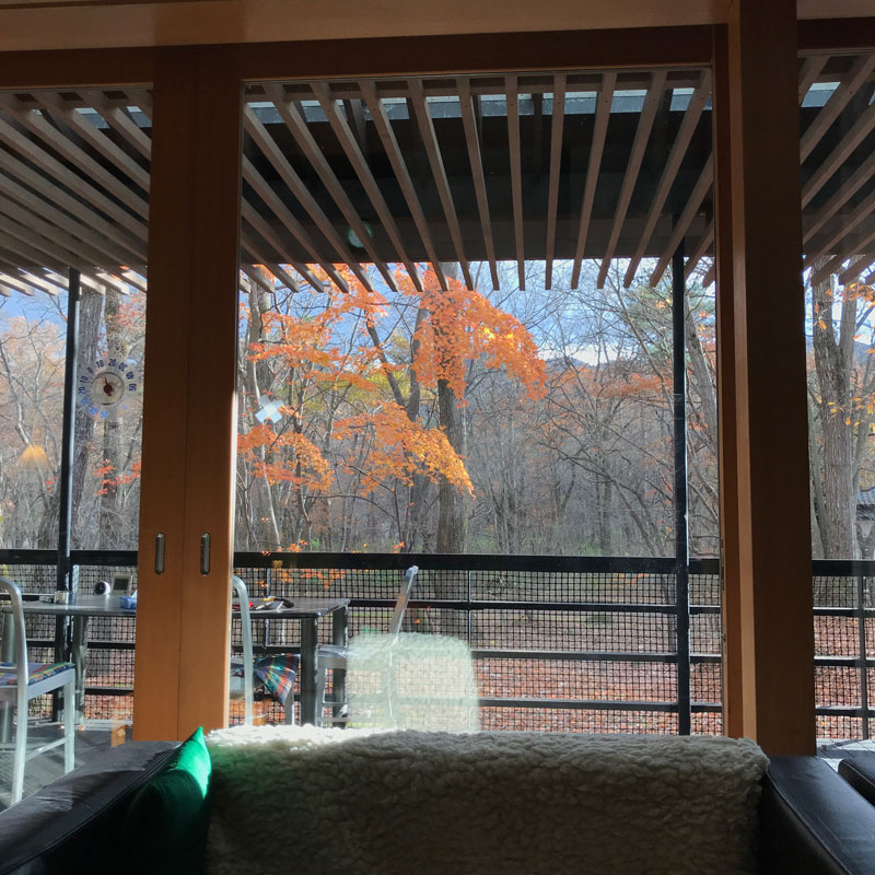 窓からの紅葉がきれい。もうとっくに美しいピークは過ぎているそうですが。