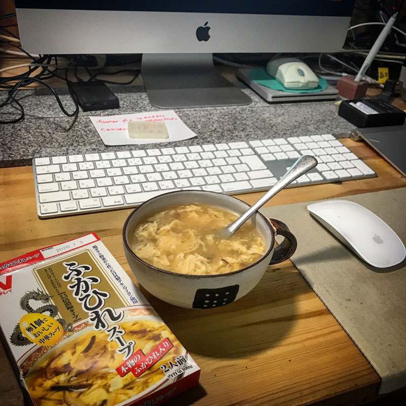 金麦箱買いのおまけ、ふかひれスープで一杯。明日は長い一日になるぞ。