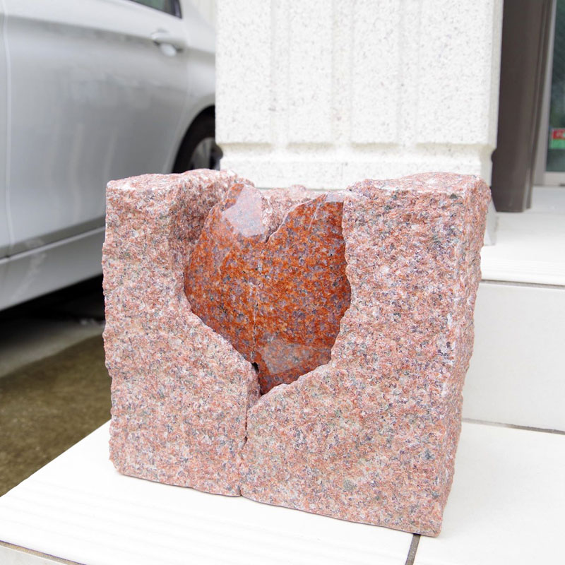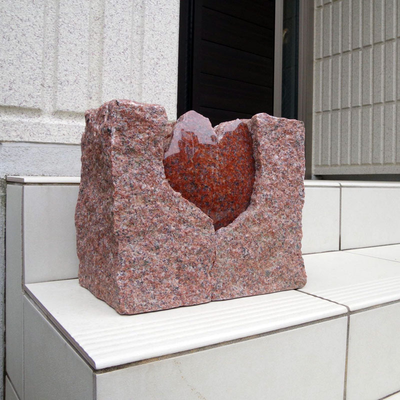 先月開催していただいた個展でDMにも使ったメインの石彫作品「アカイココロ」