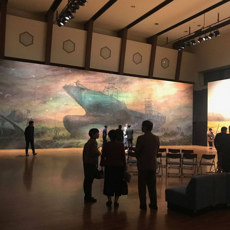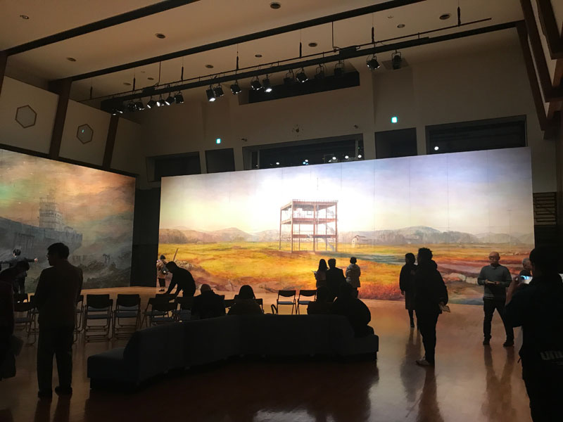 震災後は取材をして震災をテーマに巨大絵画の発表を続けている。
