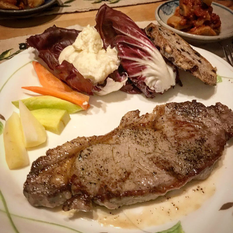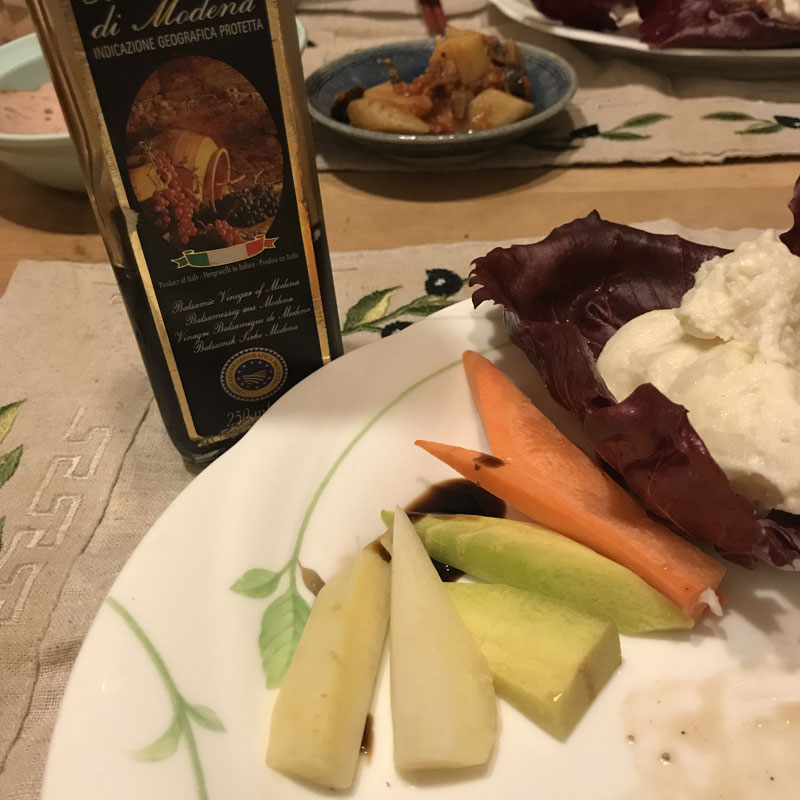 付け合わせにトレビスの葉、今日、ミュゼマエナカのランチパーティーで残ったものをありがたくいただいてきた