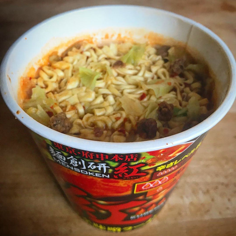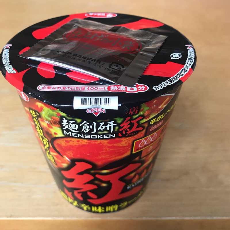 辛い〜!サッポロ一番 東京・府中本店 麺創研 紅 濃厚辛味噌ラーメン ※特性乱切り麺