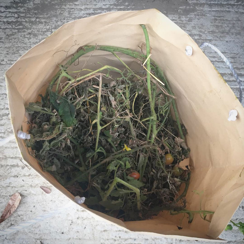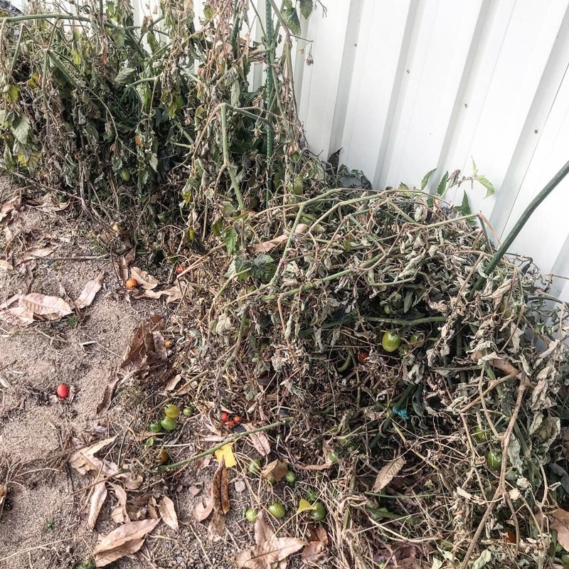 まだ実を付けてるミニトマト。個展が終わって久しぶりに見たらさすがに少し枯れ始めていた。