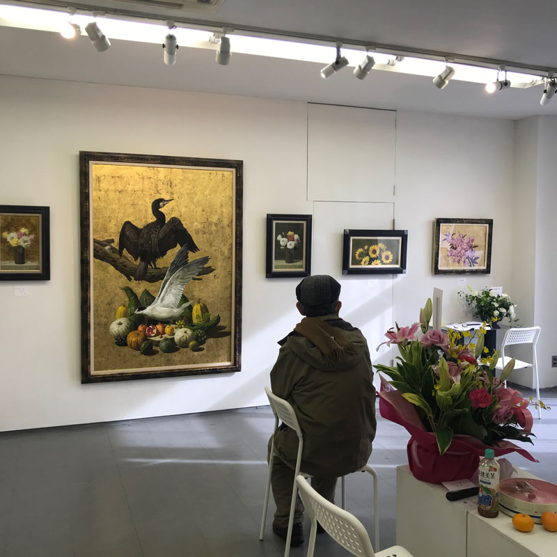 世田谷区の小学校で幼なじみの眞由美さんは、女子高生の頃、親しくしていた人の縁で、学生時代の伊勢崎勝人さんが他の芸術を目指す学生たちとたまり場のようにしていた場所で時々出会っていた!ある時、展覧会のチケットをもらって見に行った作品に衝撃を受けて初めて絵画で感激したのが伊勢崎勝人さんの作品だったそうだ。寺岸さんのFacebookの投稿で個展が開催されることを知り、どうしても見たいという思いになったので、駅からのアクセスの悪い場所なので車で送りがてら一緒に見に来た。