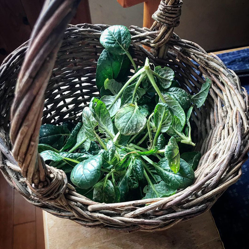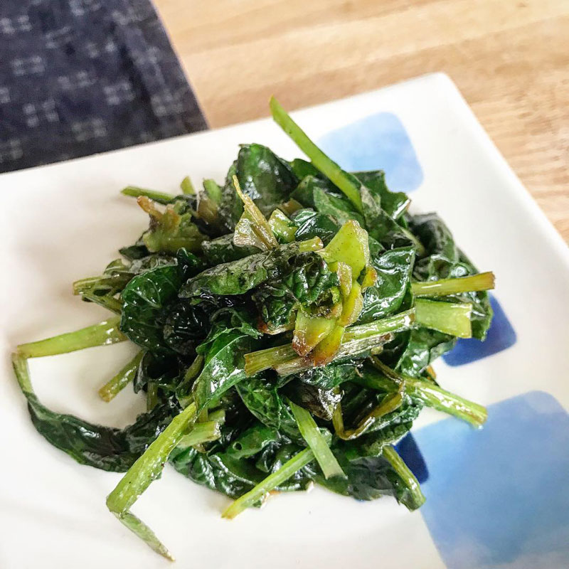 畑から雪菜摘んできて