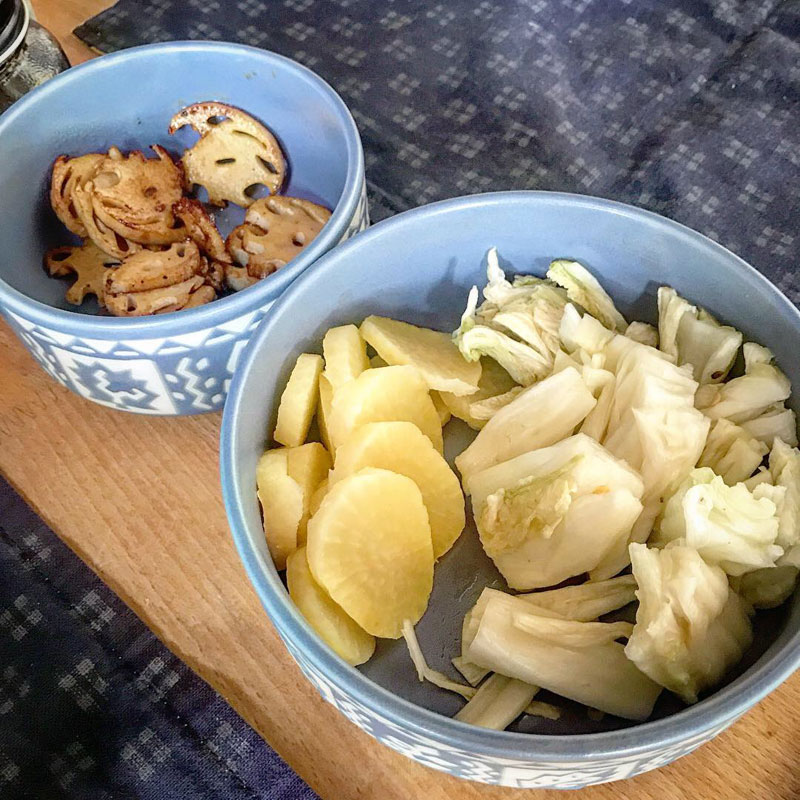 自家製の白菜漬けといただいたたくあん。