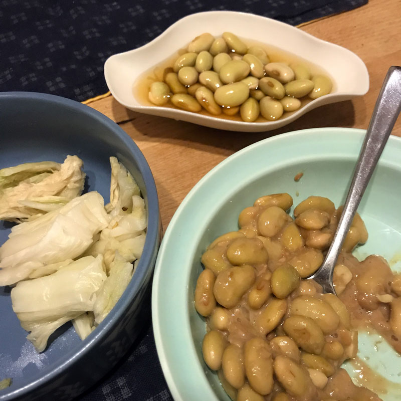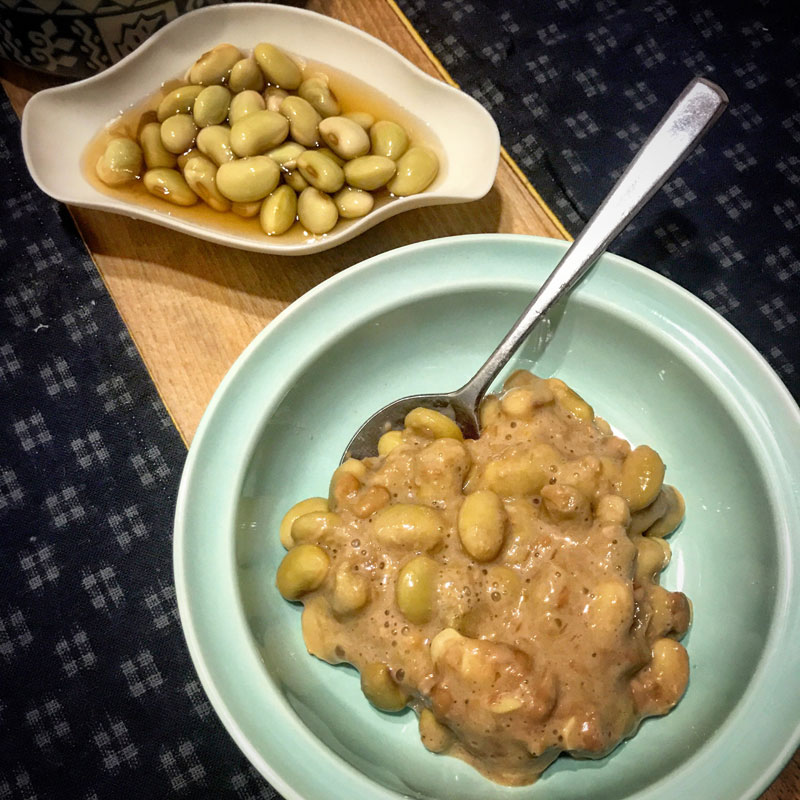 いただいた青豆をふっくら炊いていろいろ食べてるけど納豆も美味しい。