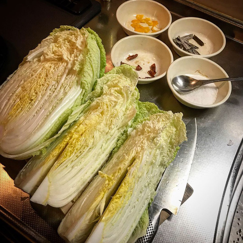 ありがたいことです。早速、白菜漬けに。3.5%の粗塩、柚子の皮、昆布、鷹の爪。
