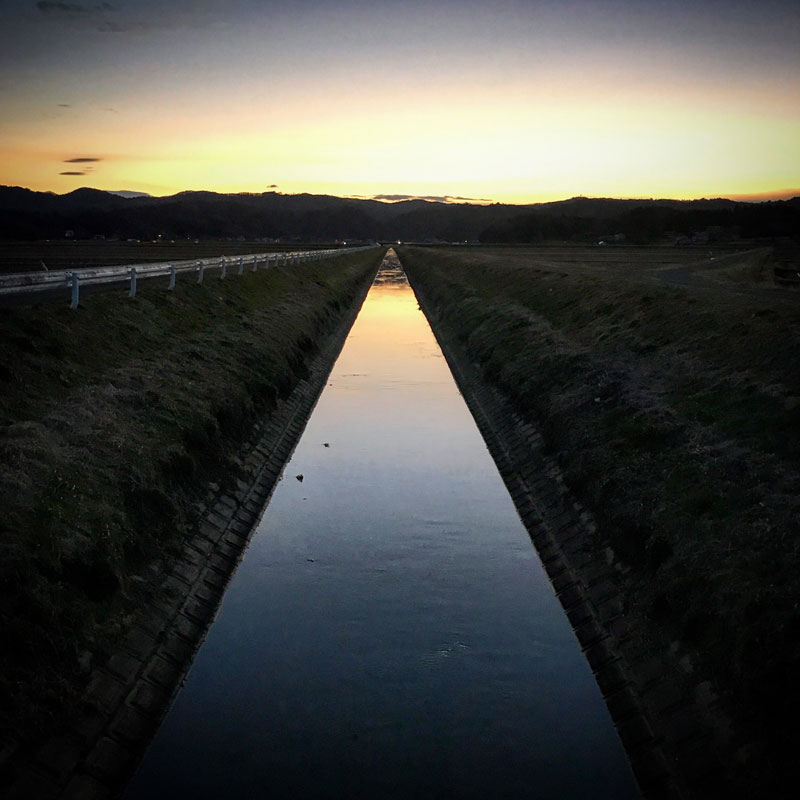 帰り道。用水路がきれいに光っていたので回り道して写真撮って帰る。