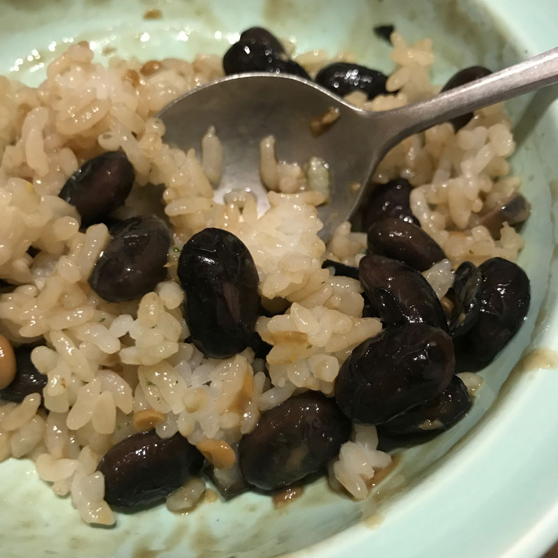 黒豆納豆、最後はご飯と混ぜてワシワシと。美味い!